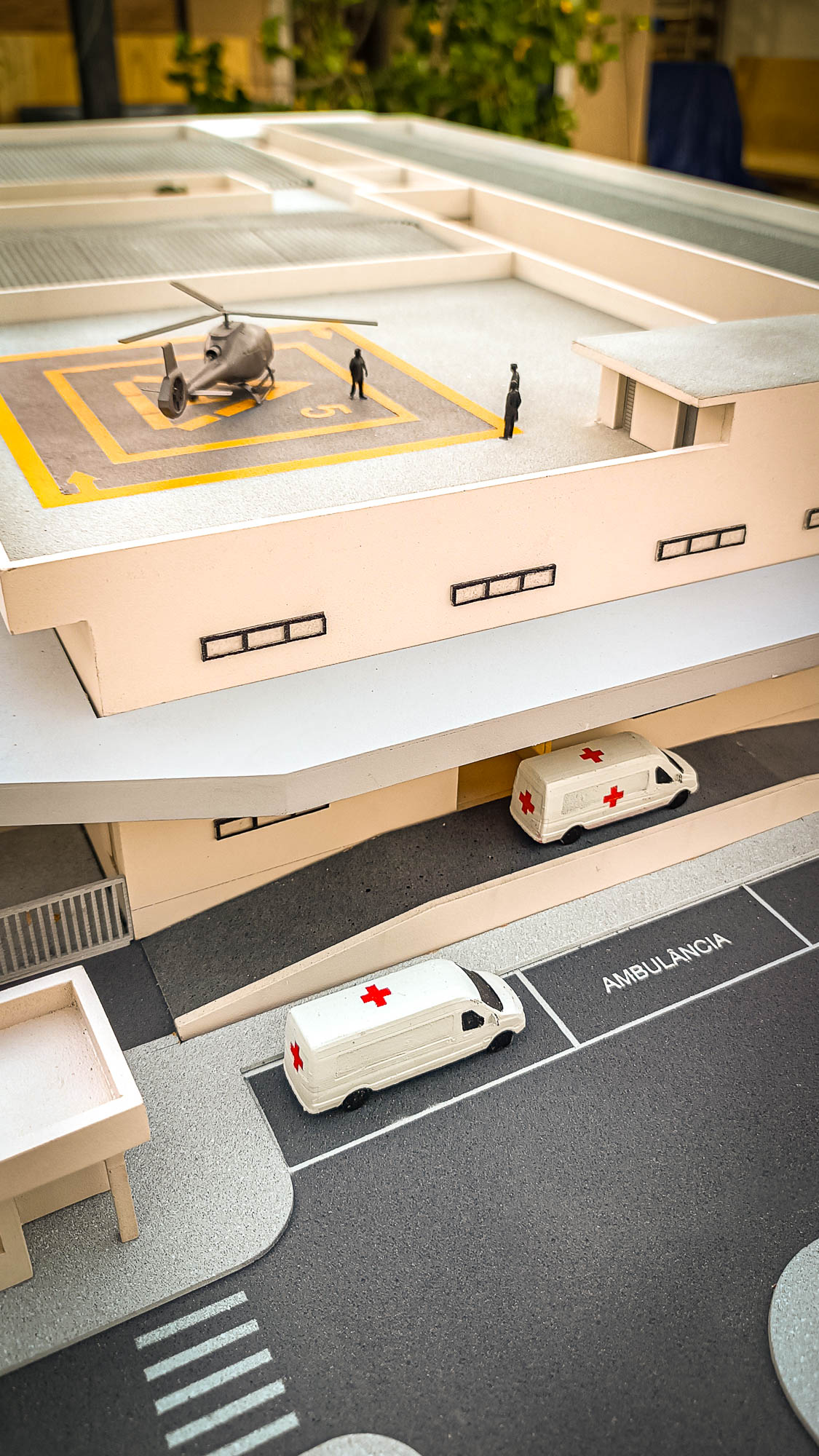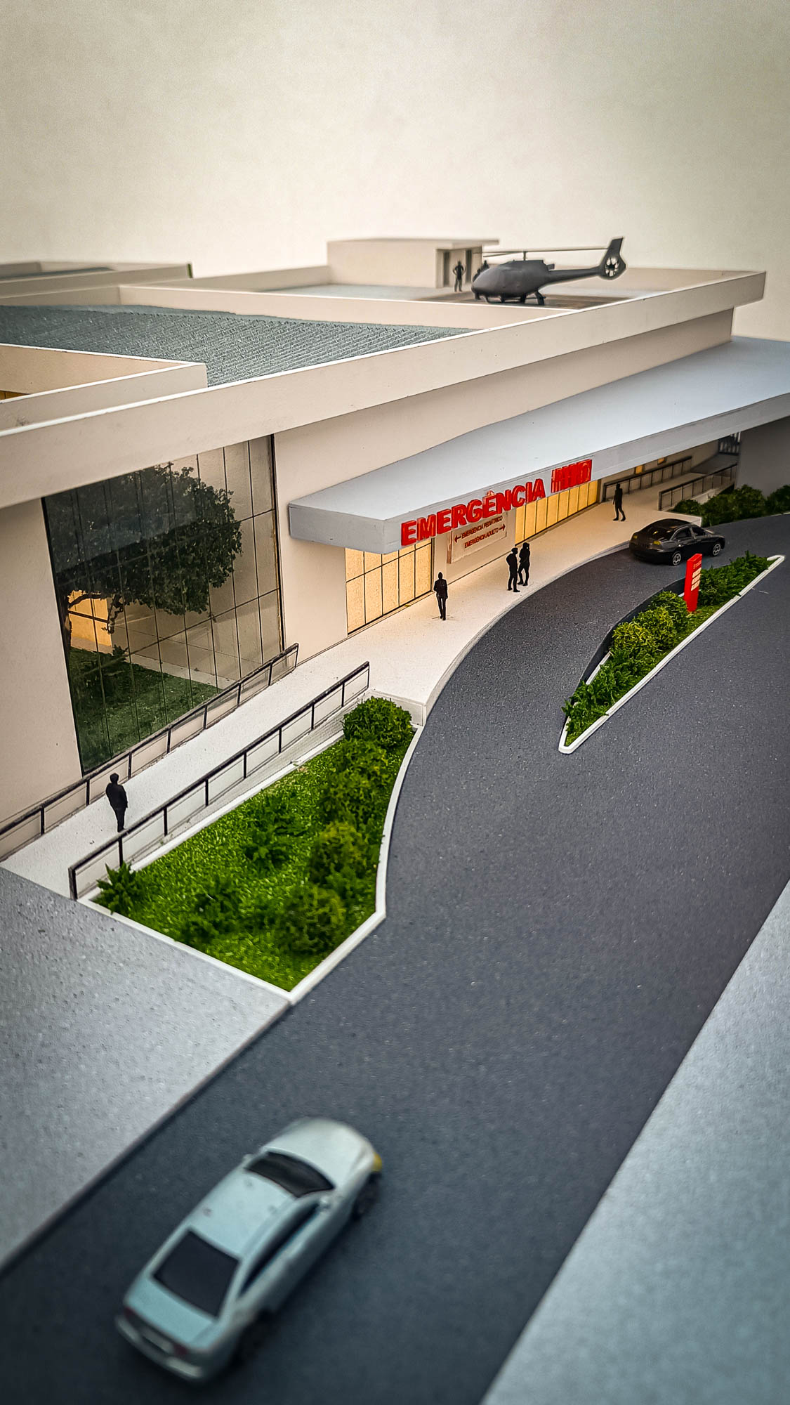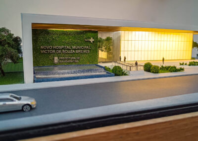 A maquete do Novo Hospital Municipal Victor de Souza Breves marcou o início de nossa parceria com a Prefeitura de Mangaratiba. Durante o processo de fabricação, recebemos visitas frequentes da equipe do município, que acompanhou de perto cada etapa — do corte das peças aos ajustes finais de pintura e iluminação.