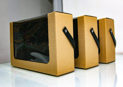 Como parte do projeto, foi criada também uma embalagem exclusiva, produzida em papel triplex com janela em acetato e alça em couro sintético, que complementa a elegância e o cuidado do conjunto.