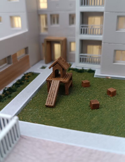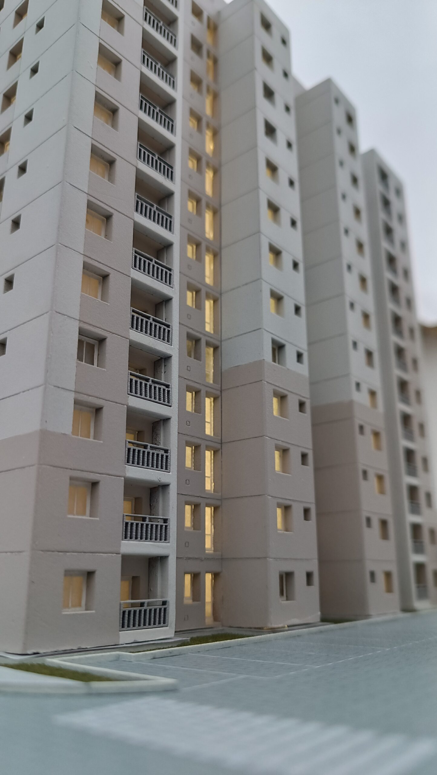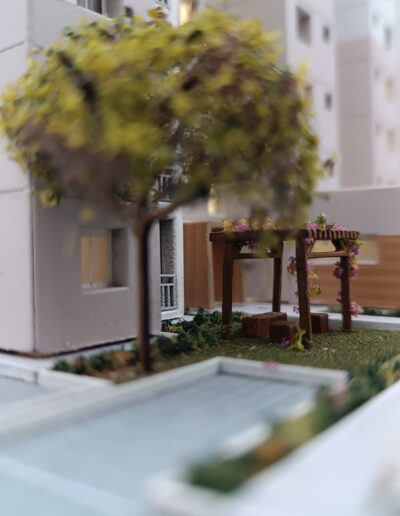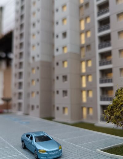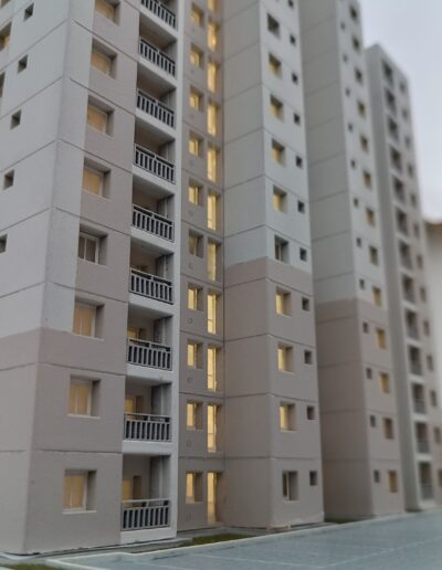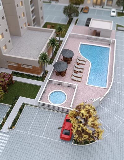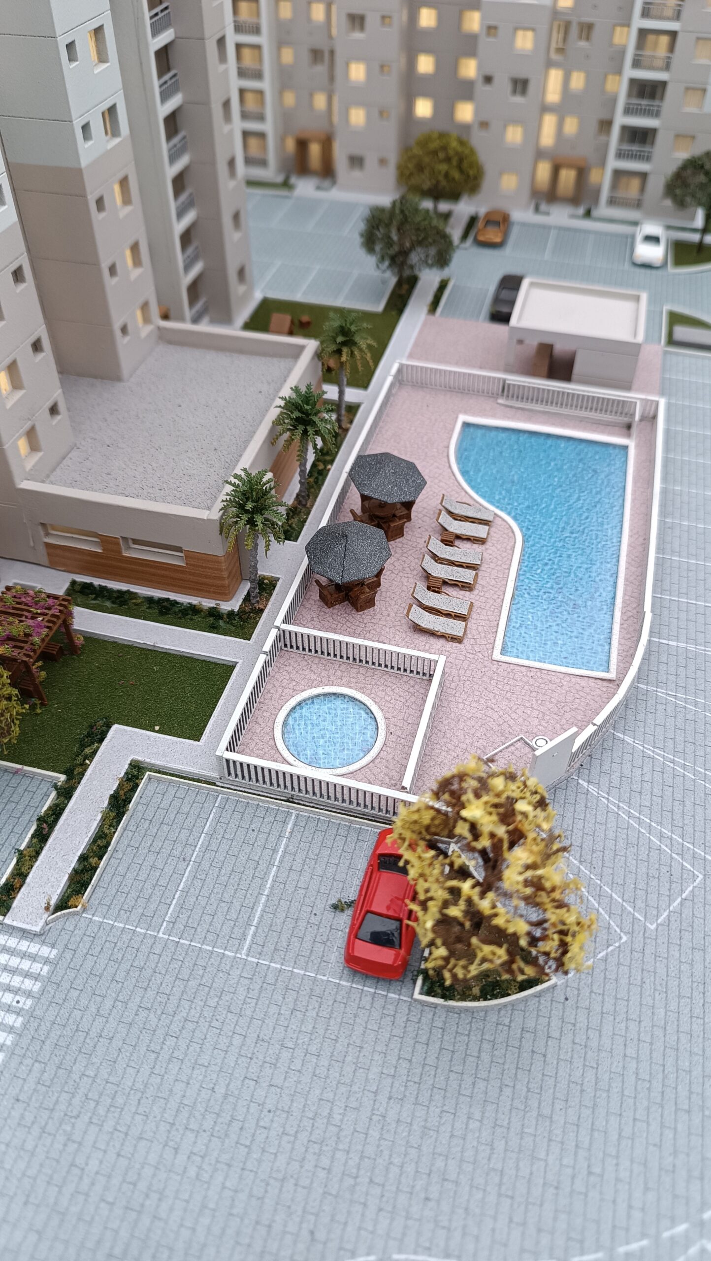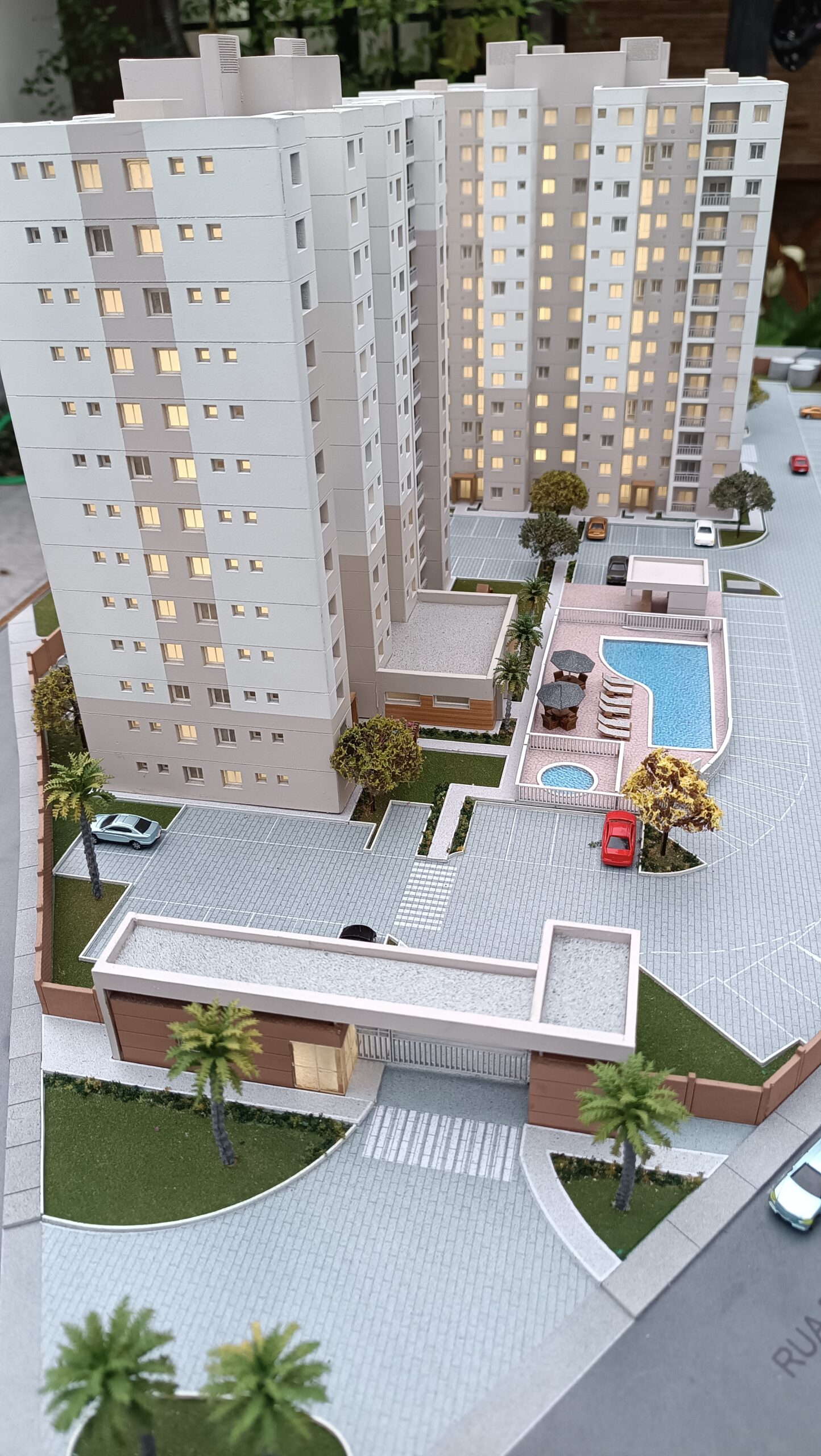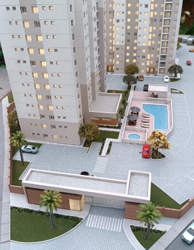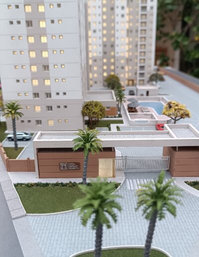 O projeto exigiu atenção a cada detalhe para representar fielmente a proposta arquitetônica do condomínio — um espaço planejado para oferecer conforto, segurança e qualidade de vida. A maquete reproduz com precisão as áreas comuns, os edifícios residenciais e os elementos paisagísticos, transmitindo de forma visual e envolvente o conceito do empreendimento.