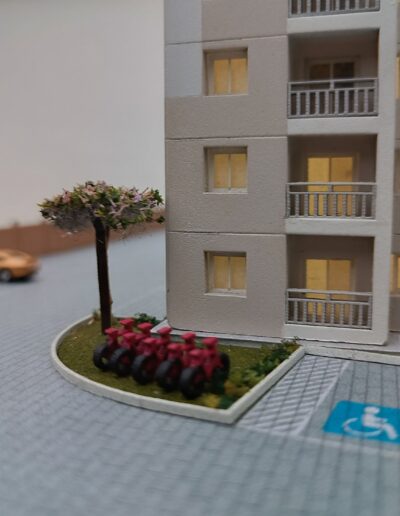 Enquanto isso, no setor de marcenaria e vidraçaria, são produzidas as bases e mesas de apoio, além da instalação dos vidros, que garantem proteção e acabamento. Os sistemas elétricos e de automação, instalados por técnicos especializados, adicionam funcionalidades e movimento à maquete. Na etapa final, a pintura dá o acabamento necessário, e a equipe de humanização aplica vegetação, mobiliário e figuras humanas, conferindo personalidade ao projeto.