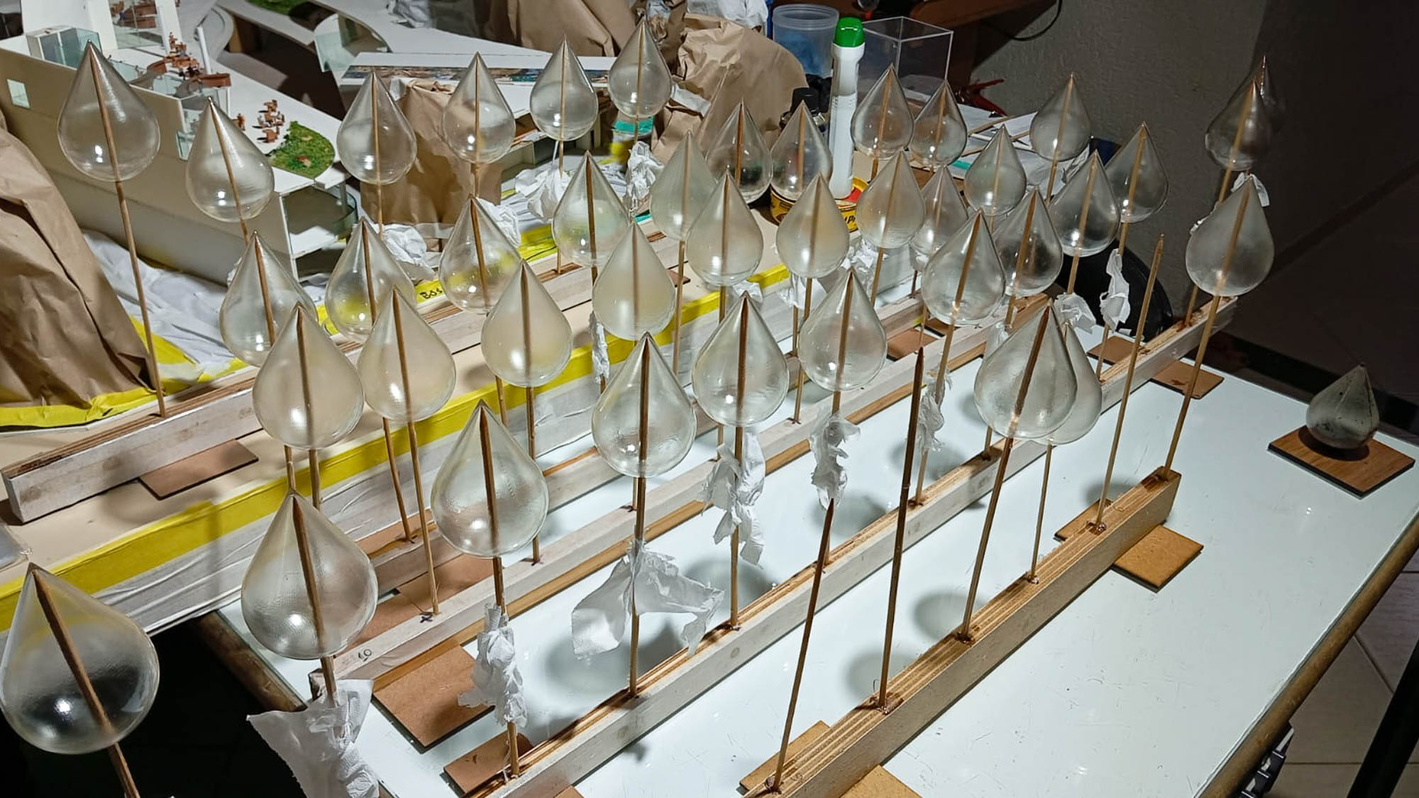 Enquanto isso, no setor de marcenaria e vidraçaria, são produzidas as bases e mesas de apoio, além da instalação dos vidros, que garantem proteção e acabamento. Os sistemas elétricos e de automação, instalados por técnicos especializados, adicionam funcionalidades e movimento à maquete. Na etapa final, a pintura dá o acabamento necessário, e a equipe de humanização aplica vegetação, mobiliário e figuras humanas, conferindo personalidade ao projeto.