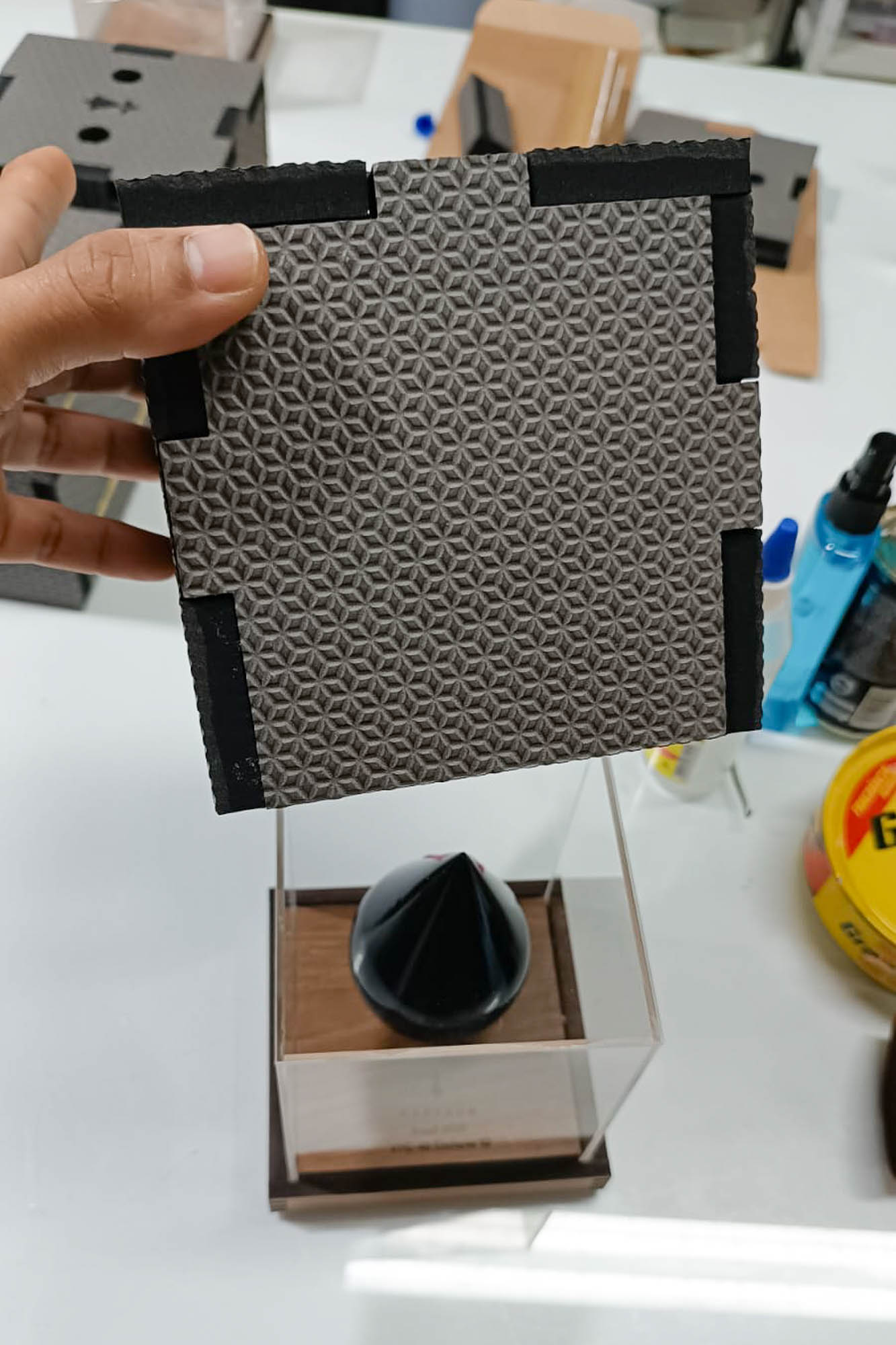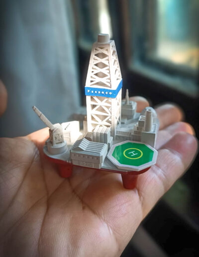 Como parte do projeto, a Sua Maquete também produziu miniaturas em formato de gota contendo petróleo da Bacia de Campos, distribuídas aos alunos como lembrança do evento. Para garantir a integridade das peças no envio internacional, foi desenvolvida uma caixa de transporte especial com amortecimento interno, assegurando que todas as maquetes chegassem perfeitamente intactas aos países de destino.